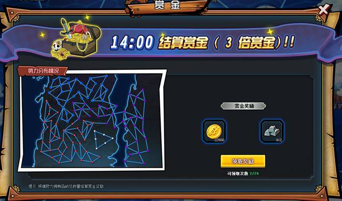 每个小时的整点,会根据势力的产量领取奖励,势力拥有的岛屿越多奖励越多。