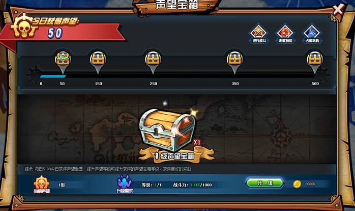 在伟大航路争霸战中,进行作战都可获得声望,每天获得的声望达到要求后可领取声望宝箱的奖励。